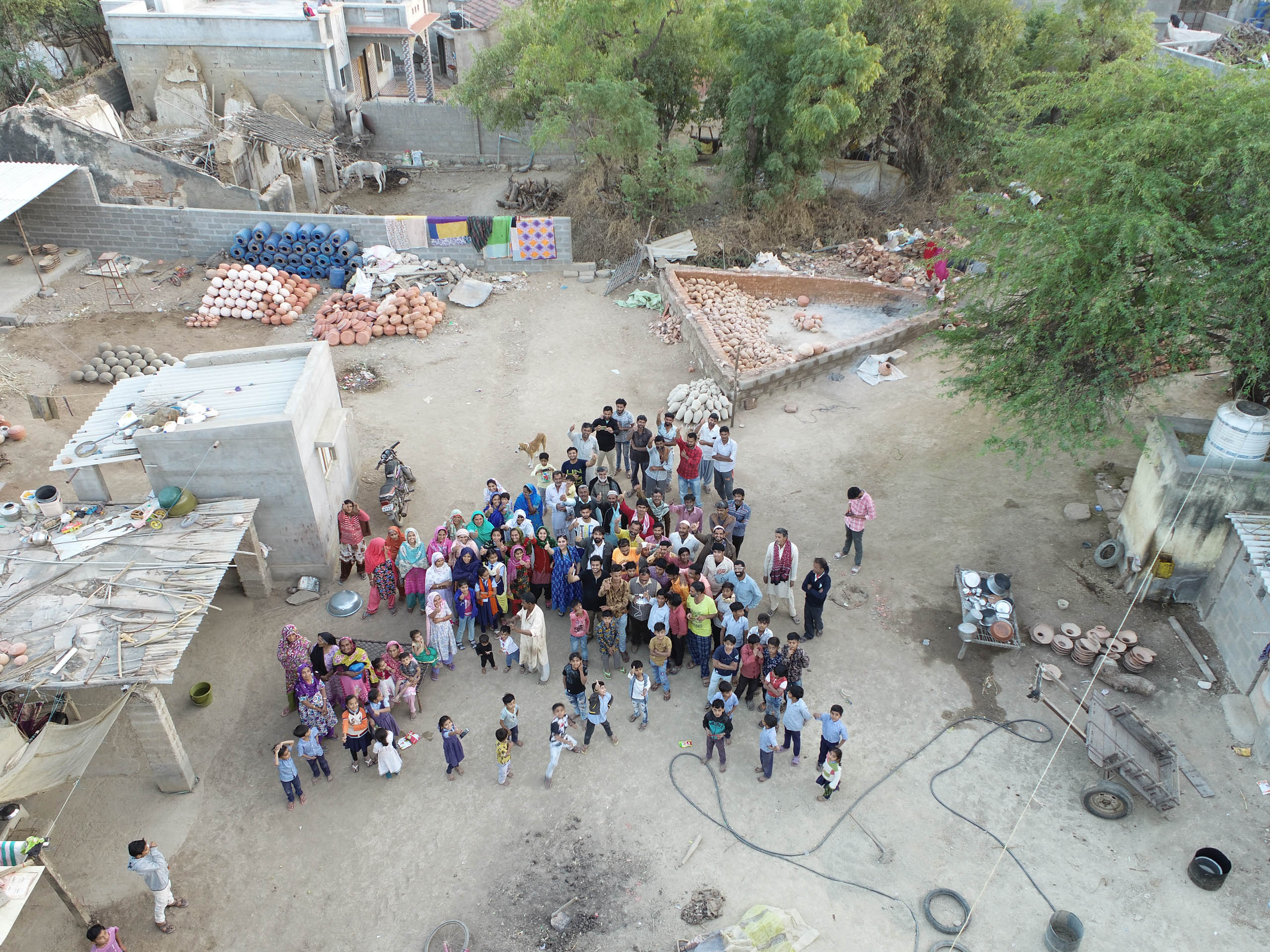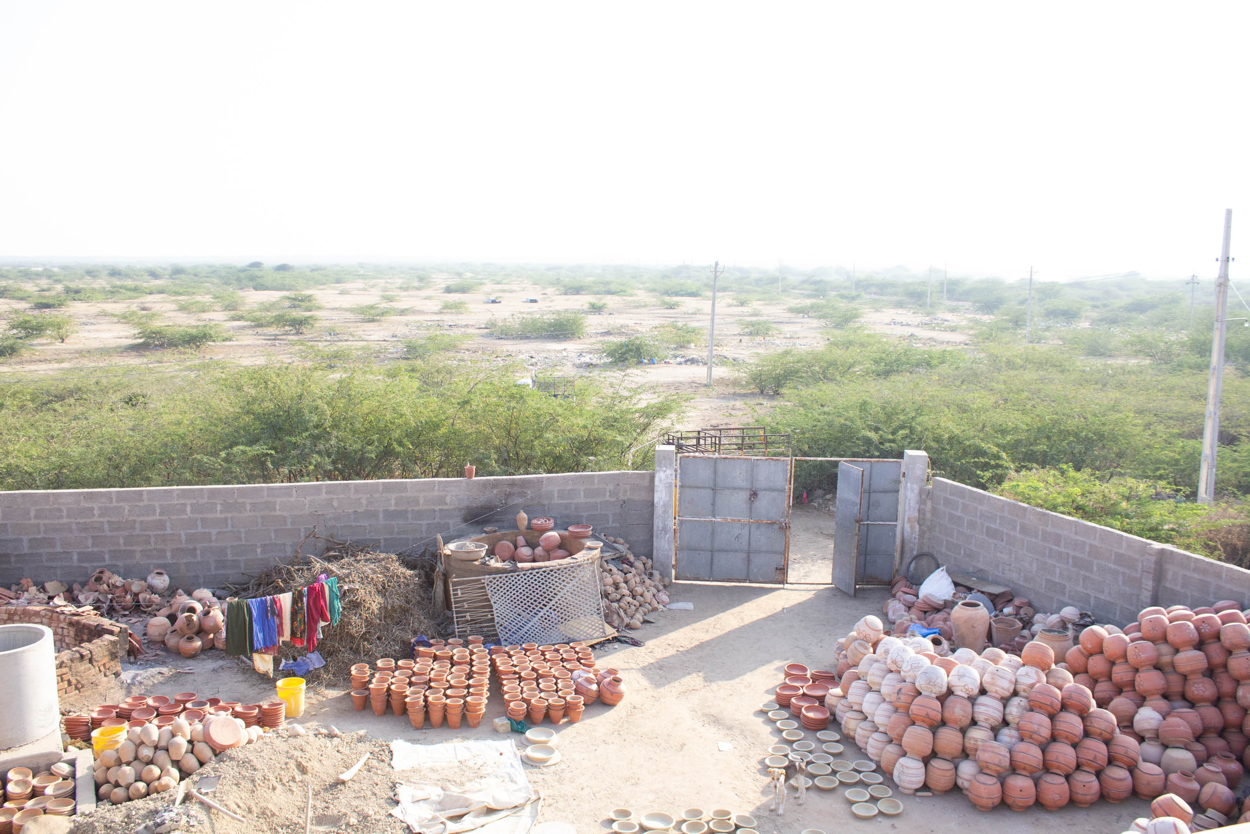 A mosque between the cluster of small houses visible from a short distance marks the village of Gundiyali. On a usual day, people can be seen arranging matkas in open areas, preparing them to fire in open firing pits. The Kumbhar community of Gundiyali has been historically known for making matkas – earthen pots. These matkas are painted in red, white and black colours defining the local style and mark. Many craftspeople have also begun to innovate based on contemporary audiences, articulating craft practices into many different products other than matkas.